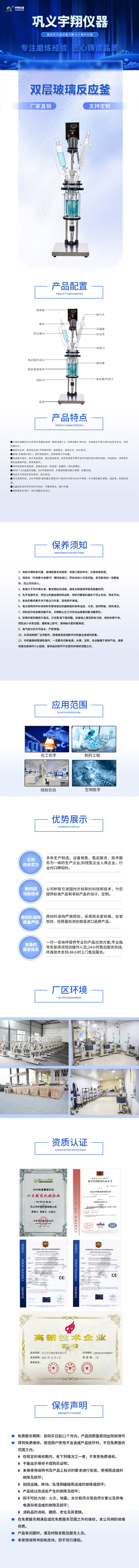 新型升降旋轉雙層玻璃反應釜 SJS212-(1-100L)